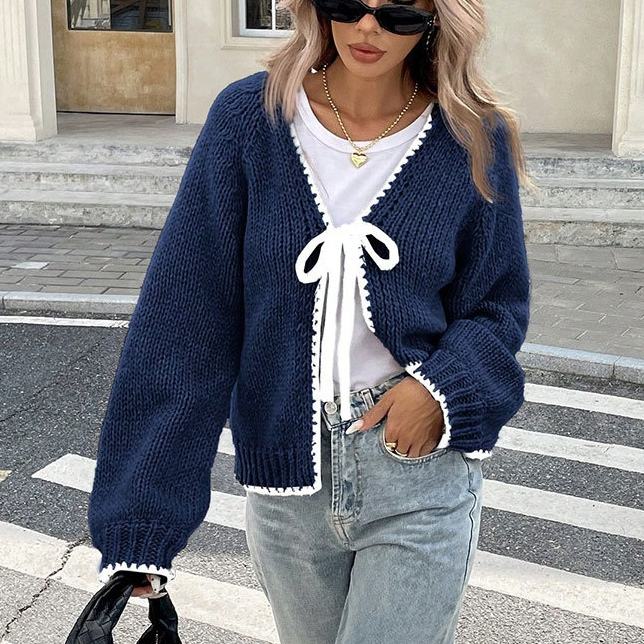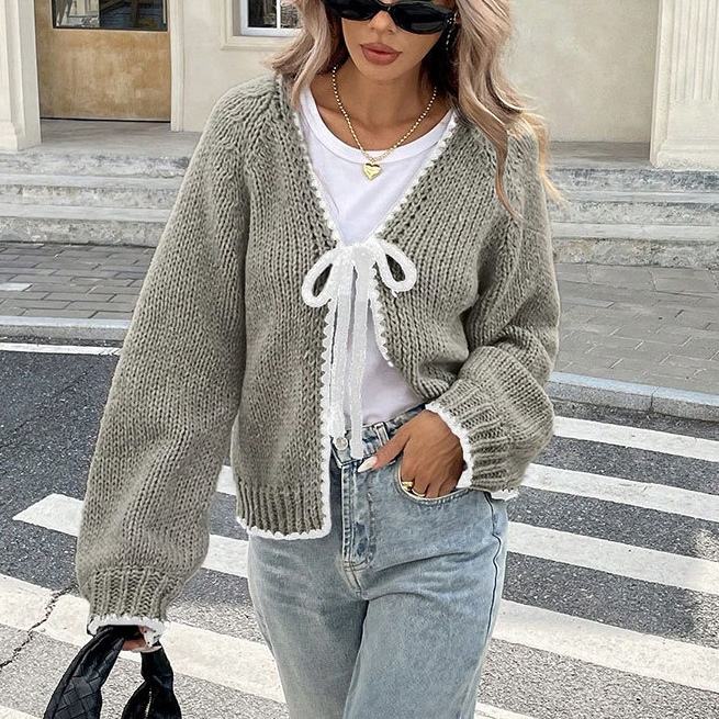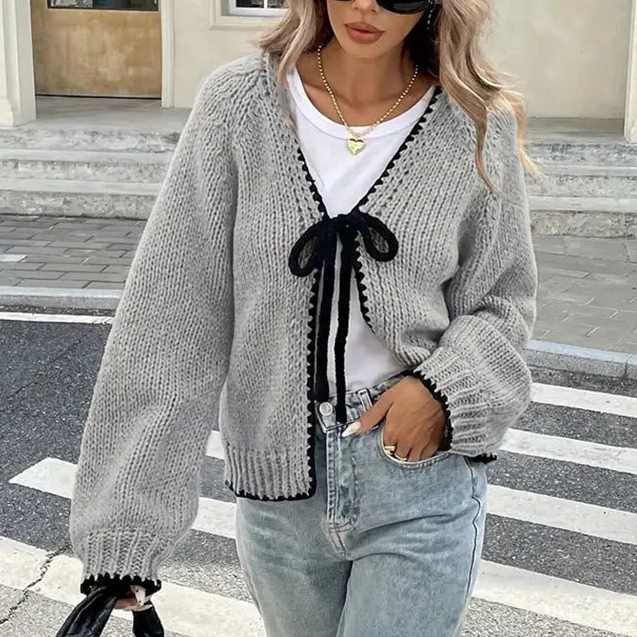 Maglione da donna autunno/inverno nuovo maglieria ampia a maniche lunghe con cravatta a Cardigan anteriore