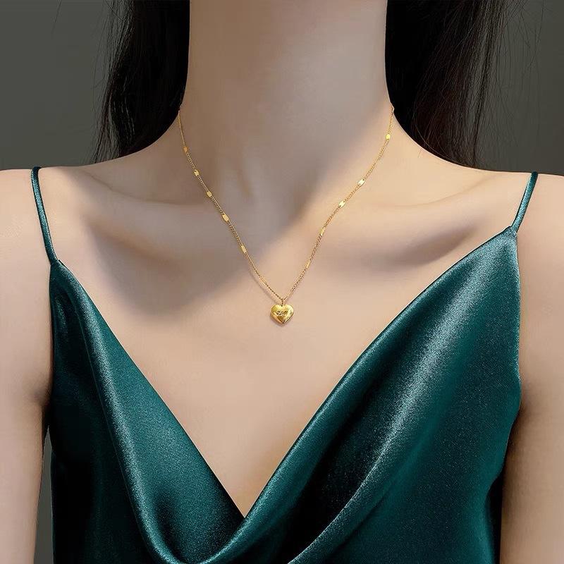 Collana da Donna in Acciaio Inossidabile Placcato Oro a Forma di Cuore, Ciondolo d'Amore Senza Sbiadimento, Gioielli per Donne