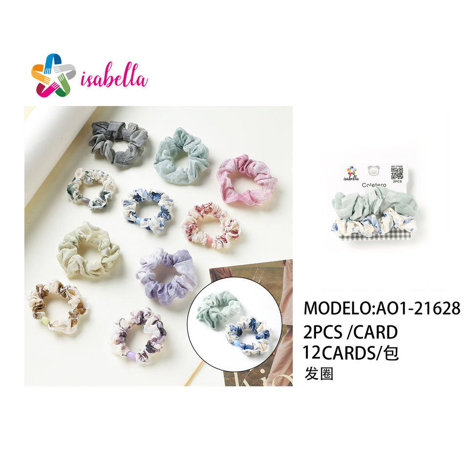 Women's Fashion Trendy 2-Piece Hair Tie Set A01-21628 Stylish Elastic Fabric Hairband Elegant Decorative Colorful Accessory