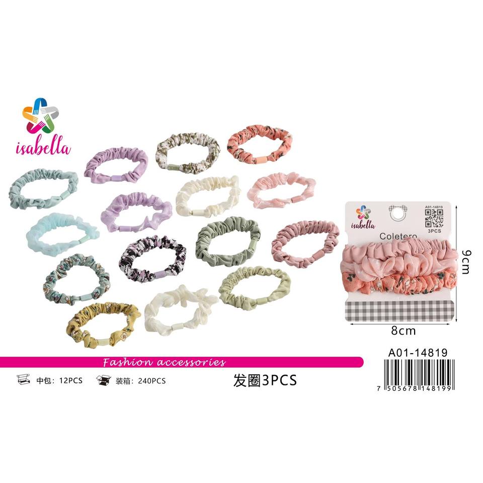 Women's Fashion Trendy 3-Piece Hair Tie Set A01-14819 Stylish Elastic Fabric Hair Accessories Colorful Decorative Cute Accessory
