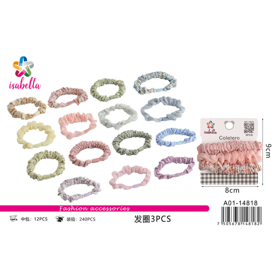 Women's Fashion Trendy 3-Piece Hair Tie Set A01-14818 Stylish Elastic Fabric Hair Accessories Colorful Decorative Cute Accessory