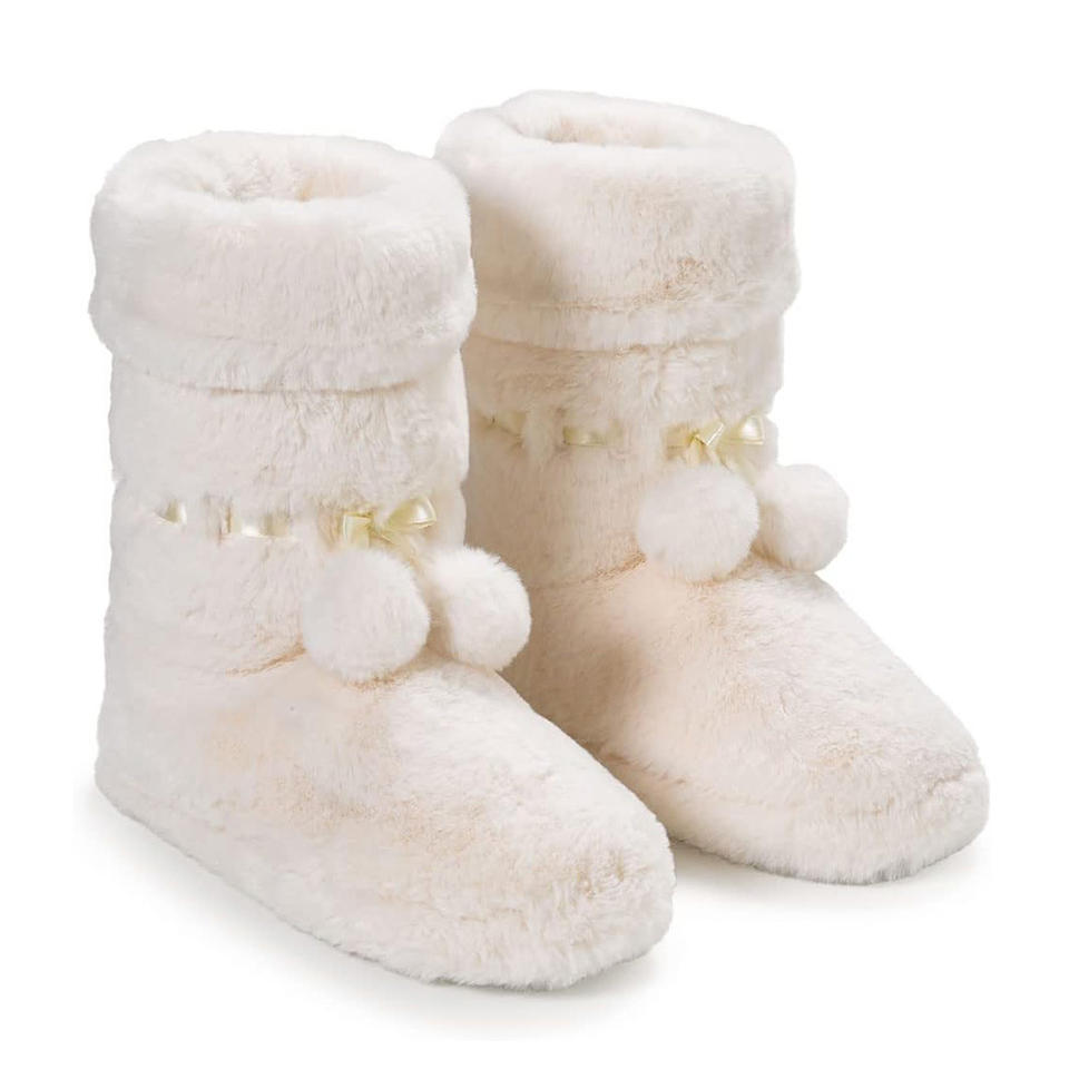 Scarpette da donna in pelliccia sintetica con pon-pon e nastro di raso sfocato Memory Foam stivaletti pantofole