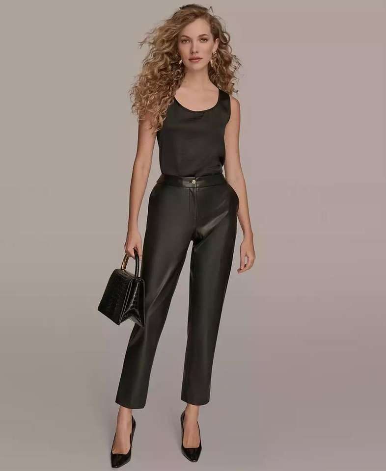 Women's Faux Leather Slim Leg Pants, Regular & Petite | Donna Karan New York