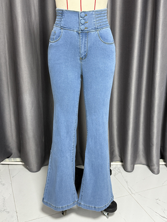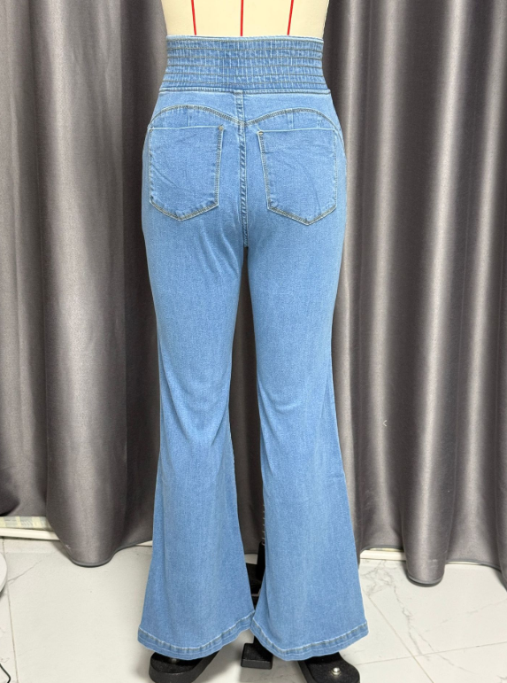 Women's Flare Skinny Denim Pants 2025 High Waist Button Elastic Breathable Casual Jeans