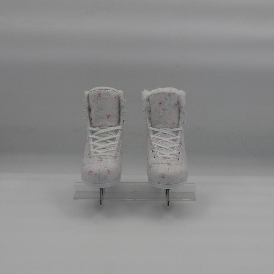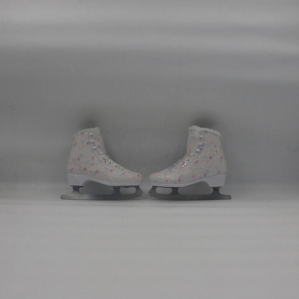 Pattini da ghiaccio con stampa floreale da donna-bianco con accenti colorati, accogliente velluto foderato