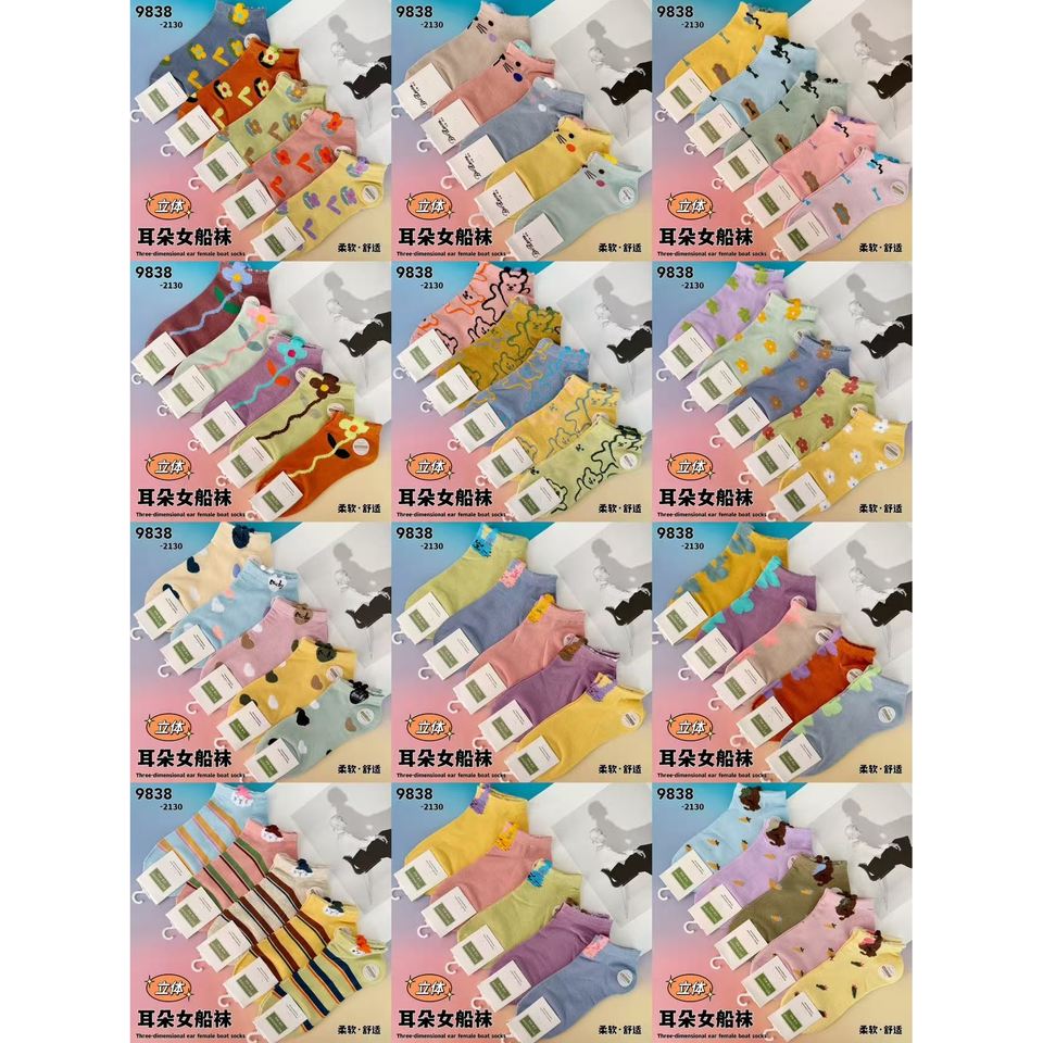 Women's Floral Printed Ankle-Length Socks Breathable Nylon Spandex Knitted with Mesh for Spring Summer Packaged Individual Bags