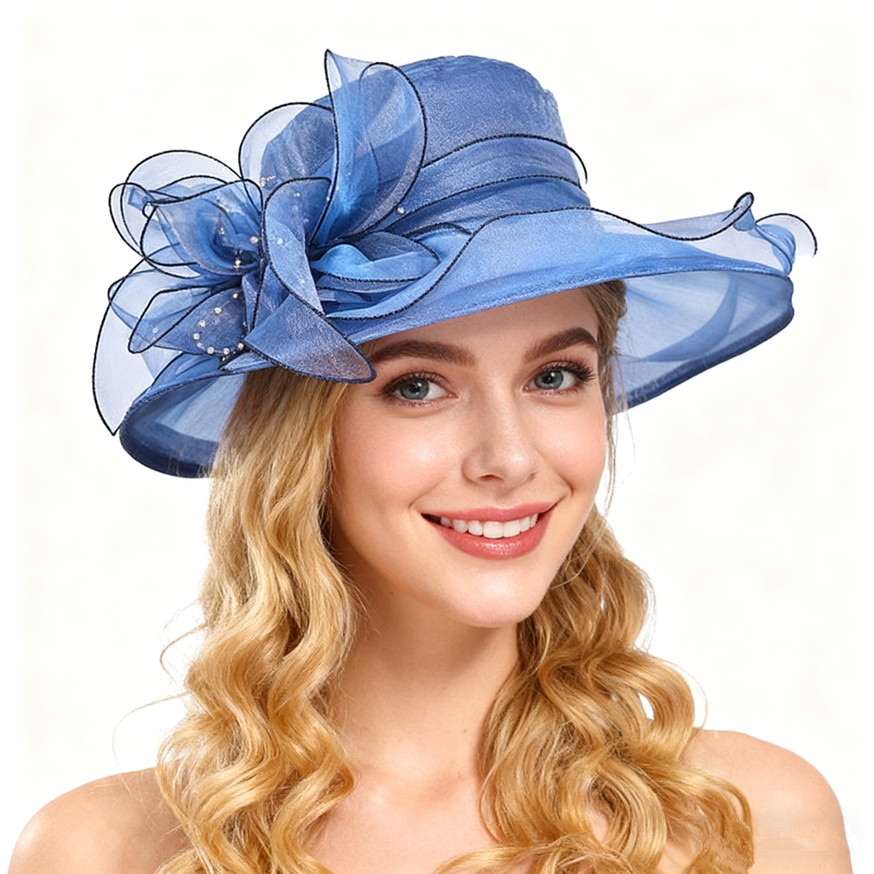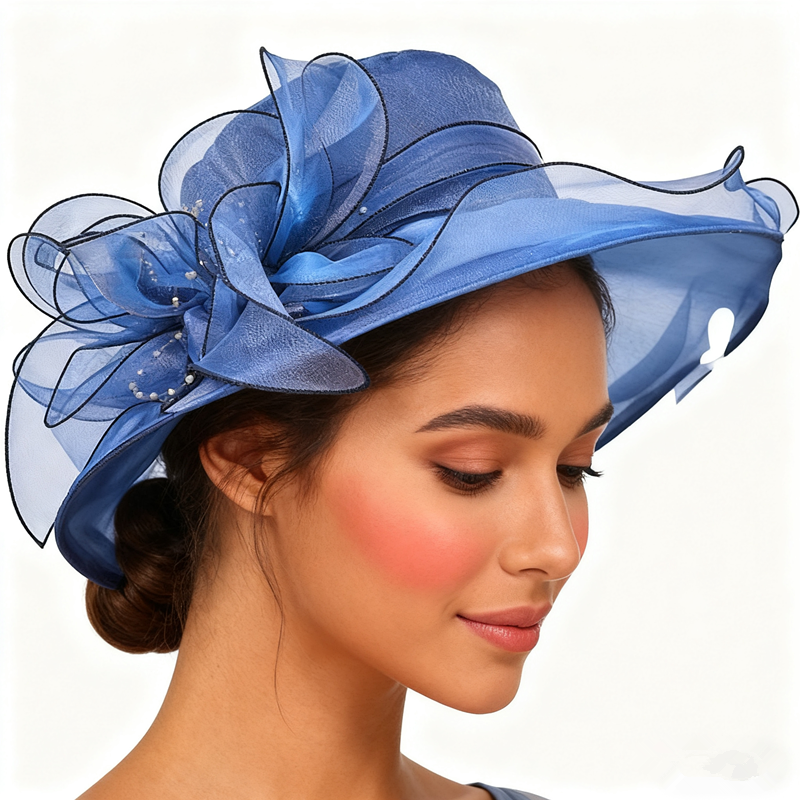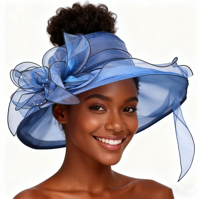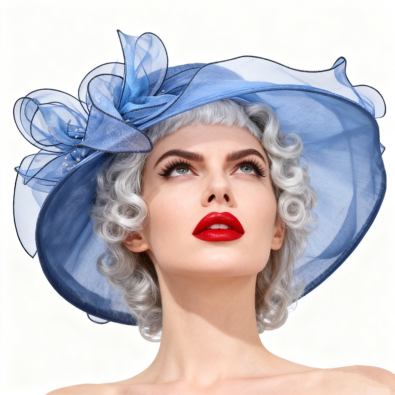 Cappello a cilindro Fascinator formale da donna-Design in pizzo Kentucky Derby, cappello da sposa in Organza per chiesa, Tea Party e matrimonio