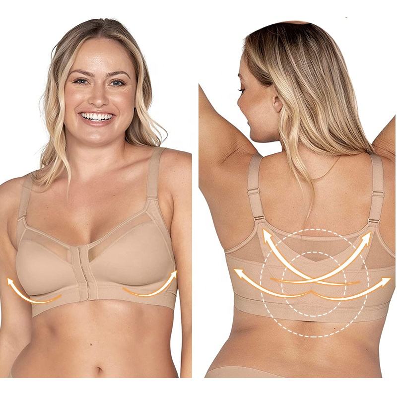 Reggiseno Modellante Senza Ferretto con Chiusura Frontale, Supporto Posturale e Copertura Totale per Donna