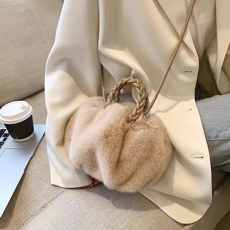 Borsa in Pelliccia da Donna con Chiusura a Cerniera, Borsa in Pelliccia alla Moda