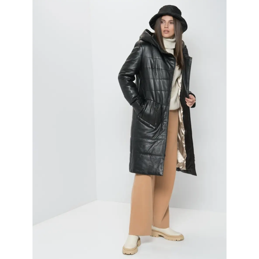 Cappotto in Pelle Nera con Cappuccio per Donne – Pelle di Agnello Vera, Giacca Invernale Lunga, Abbigliamento Esterno Fatta a Ma