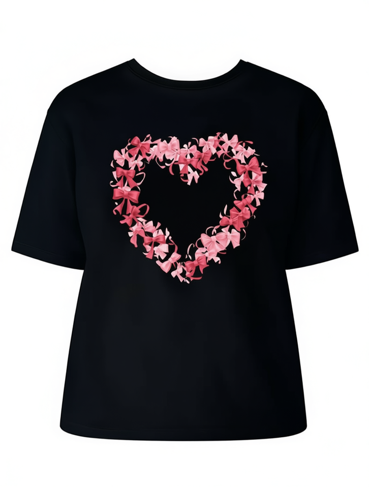 Women's Geometric Heart Print T-Shirt Short Sleeve Round Neck Casual Top Soft Black Fabric Machine Washable Spring Summer Autumn