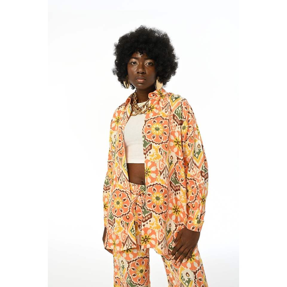 Women's Geometric Patterned Oversize Blouse Comfortable and Stylish Shirt
