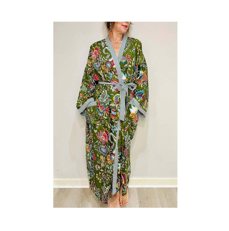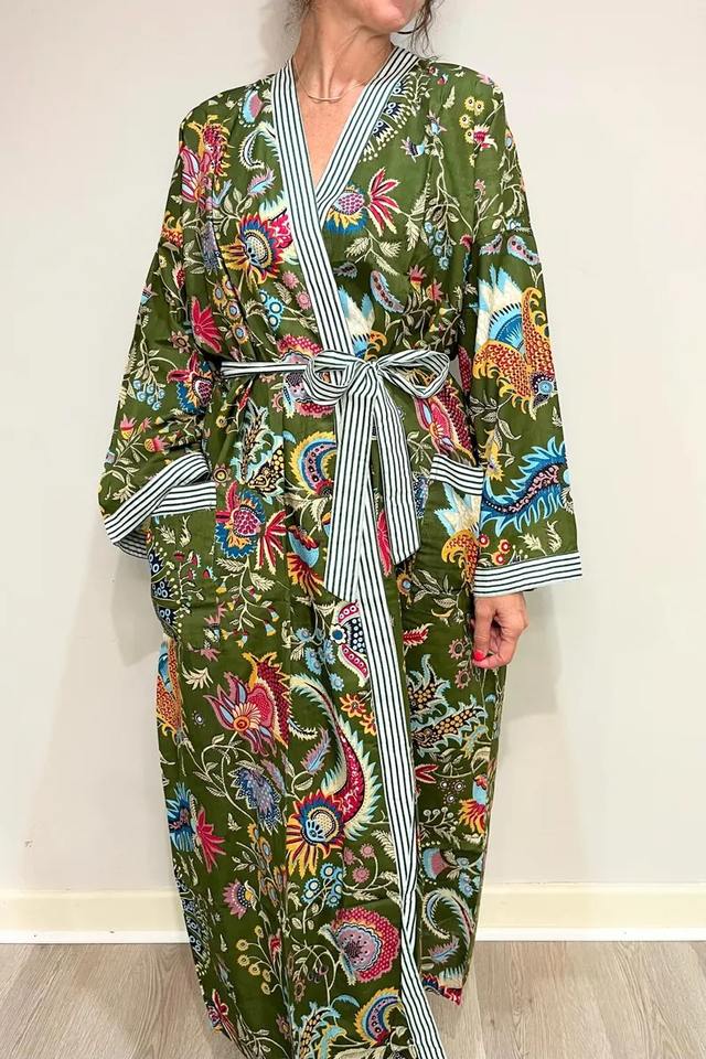 Women's Green Cotton Kimono Robe Dressing Gown Plus Size for Brides Summer Kimono for Women