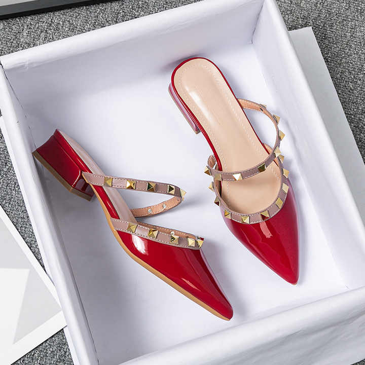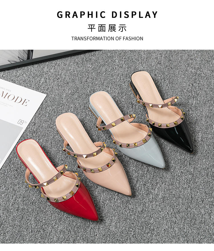 Mezze scarpe da donna rivetto pantofole tacco basso sandali 668-1
