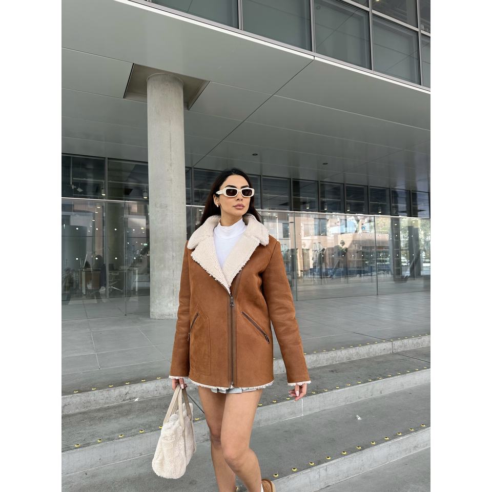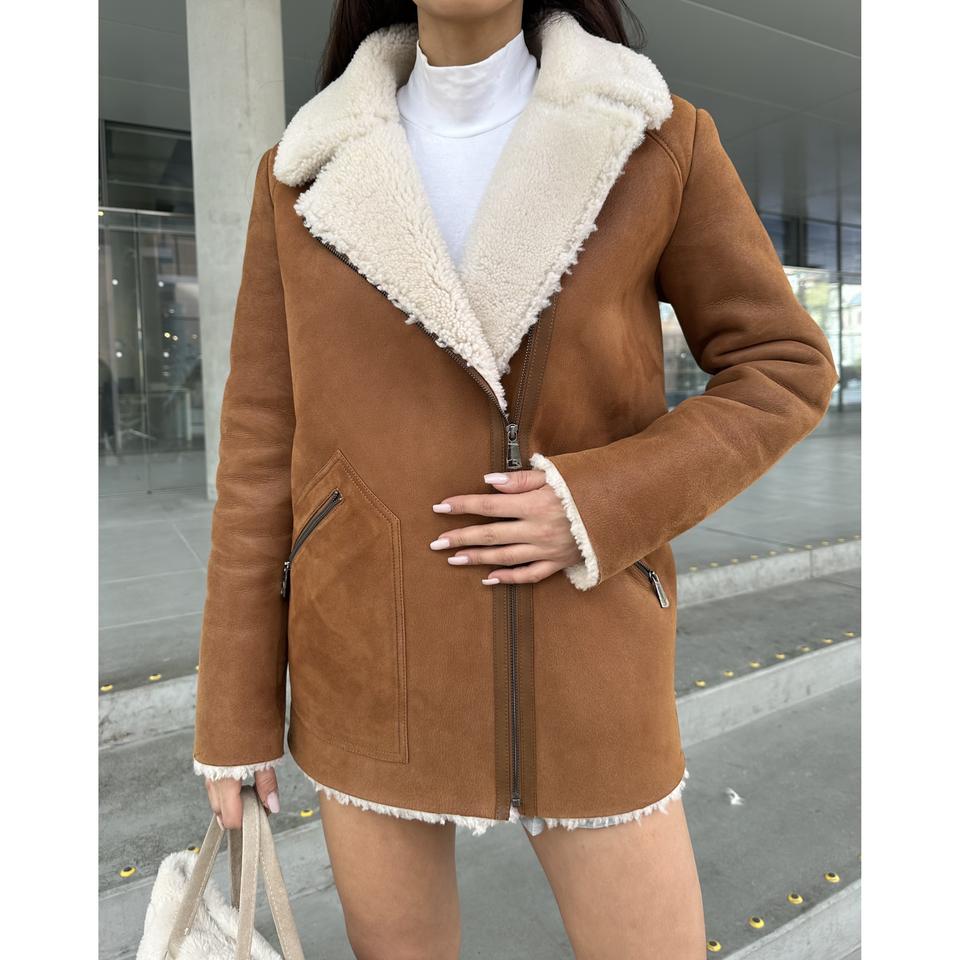 Women's Handmade Genuine Sheepskin Zip Coat in for Camel OEM/Wholesale Private Label Parka Outerwear From Turkey
