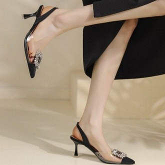 Sandali con tacco da donna Design cubico trasparente