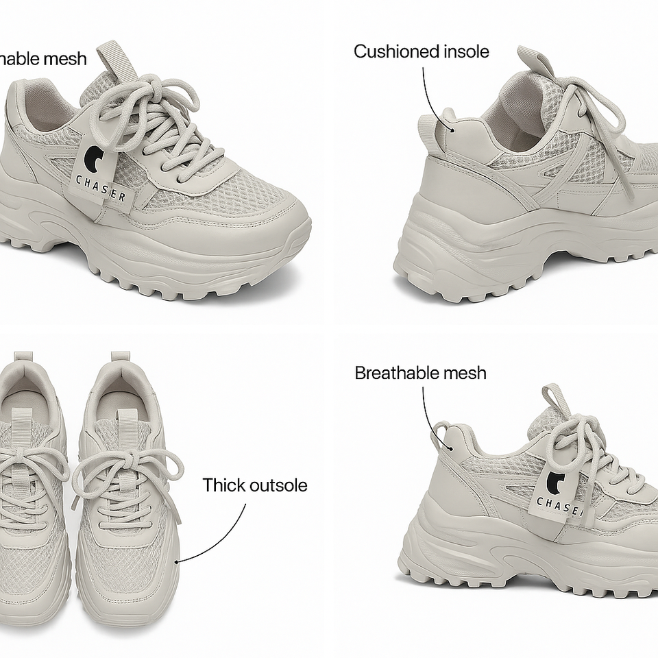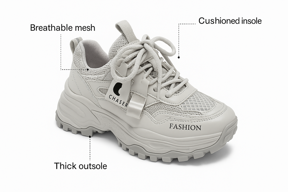 Women's High Comfort Thick Sole Fashion Sneakers Chunky Lace-Up Casual Shoes
