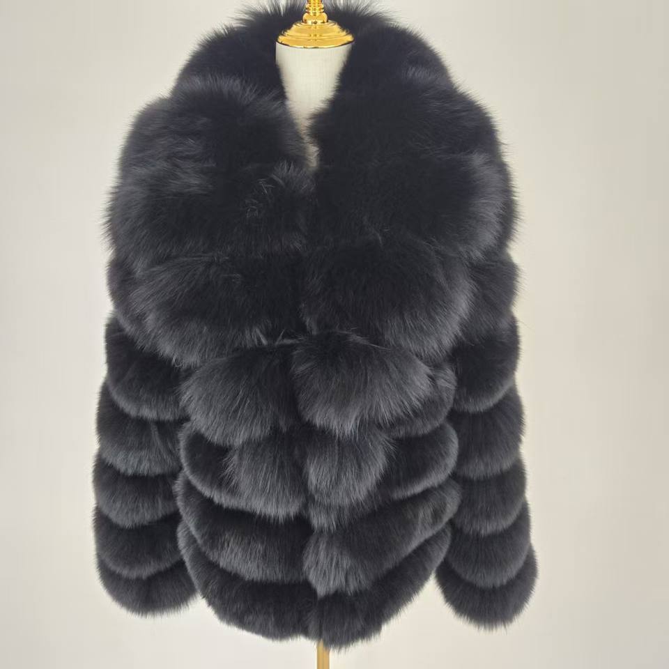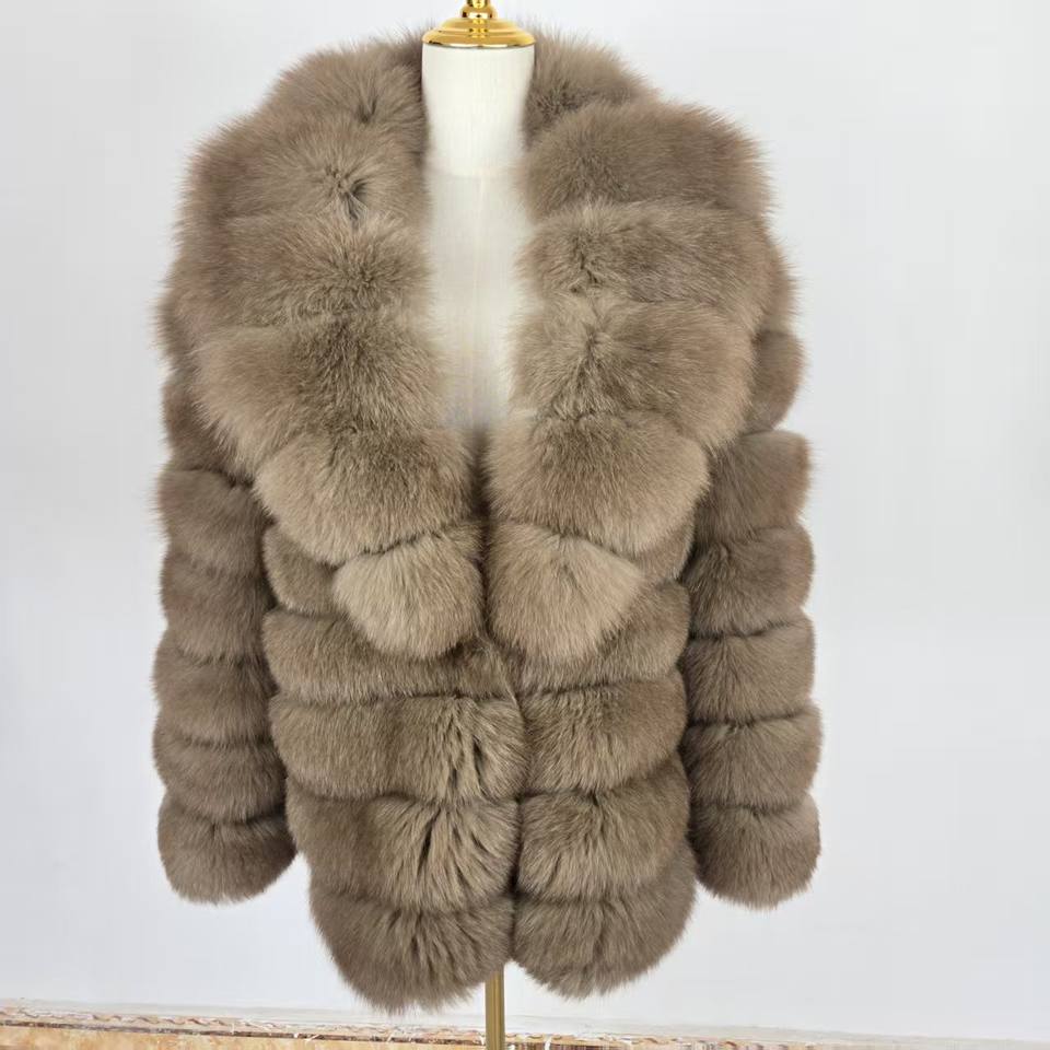 Women's High-End Winter Outwear Short Fashionable Fur Coat with Sable Fox Fur Collar Single Breasted Dyed Trench Outerwear Warm