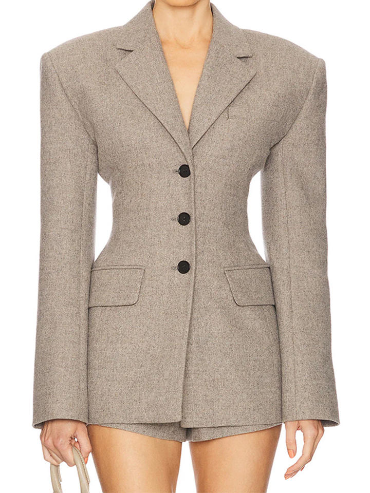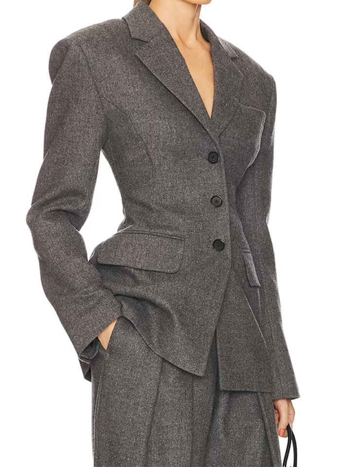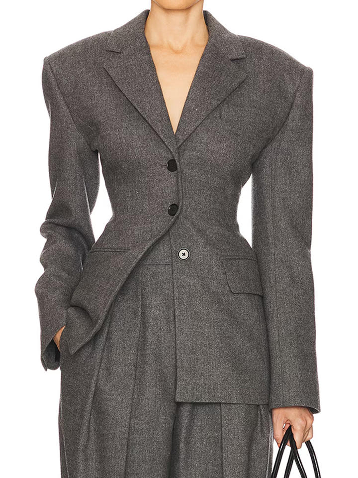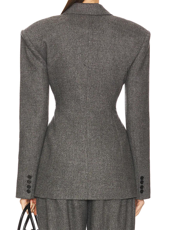 Blazer in Lana di Alta Qualità per Donna, Lusso Discreto, Tessuto Autunno 2025, Nuovo Modello con Ricamo a Mano, Monopetto, Vita Stretta, Cappotto Grigio
