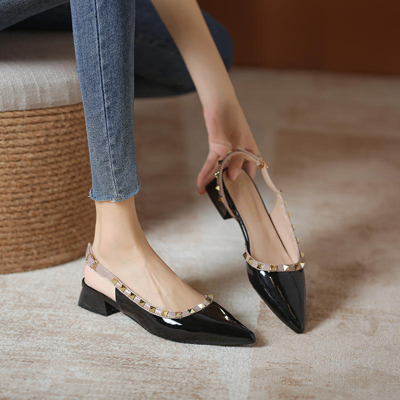 Women's High Top Summer Slip-On Sandals Nude Patent Leather with Lancet Pointed Toe New Low Thin Heel Plus Size Wholesale Shoes