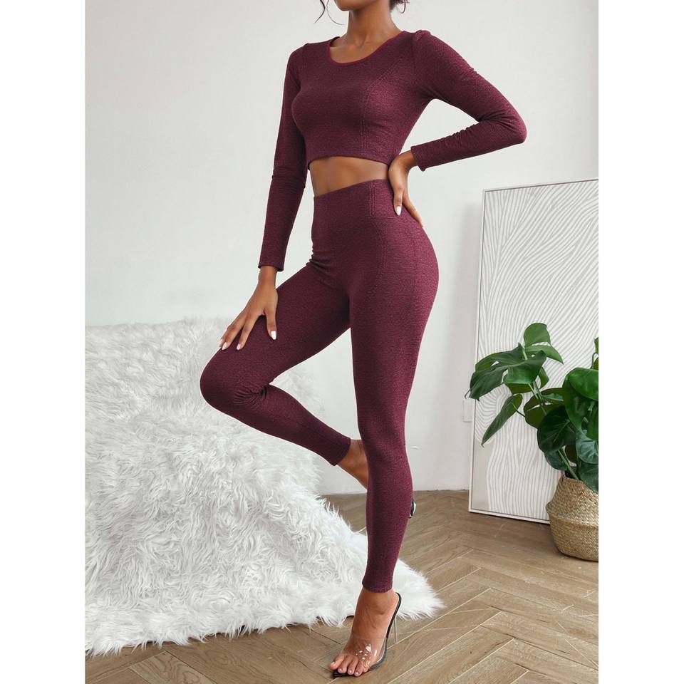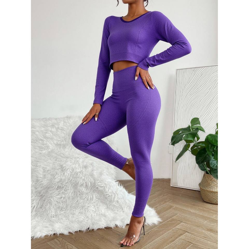 Women's High Waist Casual Fitness Sports Suit Solid Color Long-Sleeved Trousers Warm for Autumn and Winter