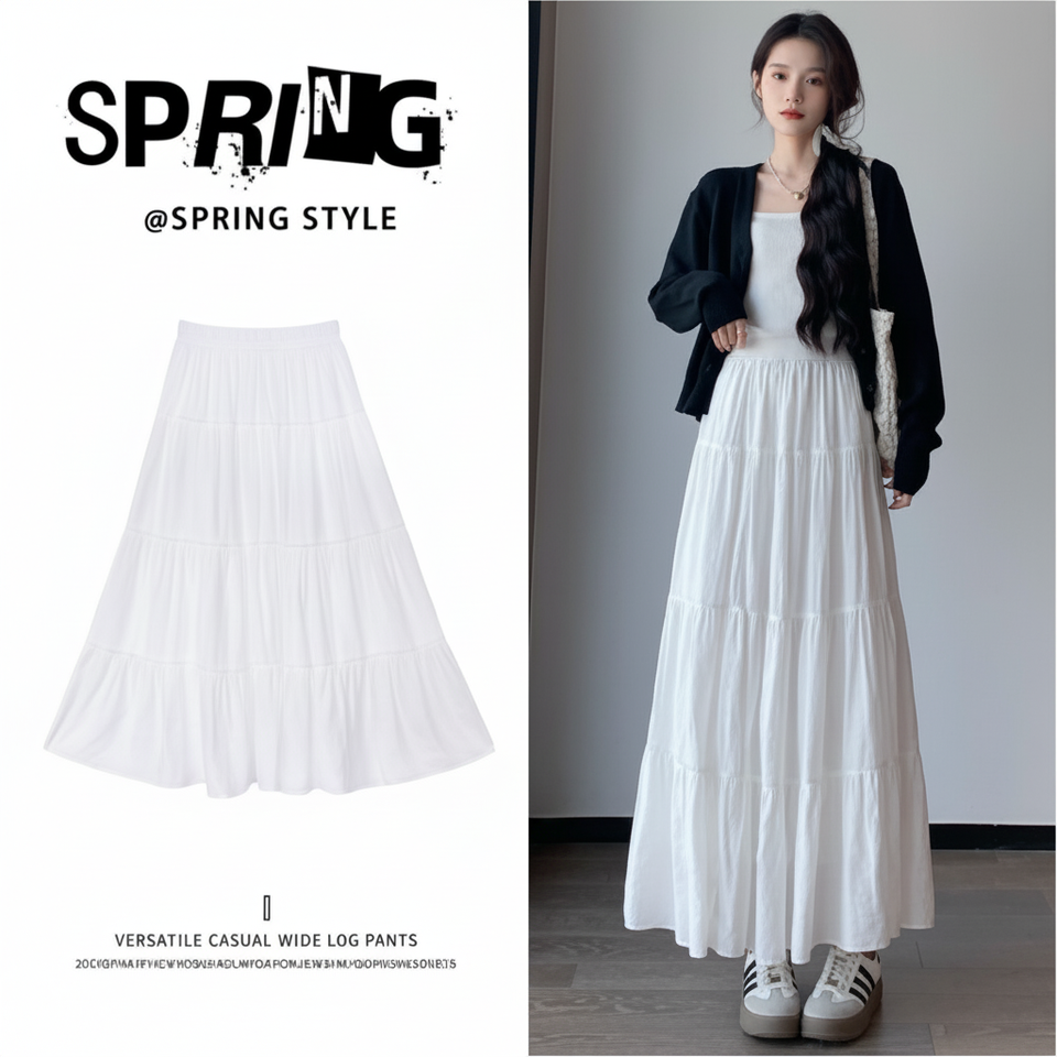 Women's High Waist Slim A-Line Long Skirt 2025 Spring Summer Collection White with Small Height Bustier Cake New Arrival
