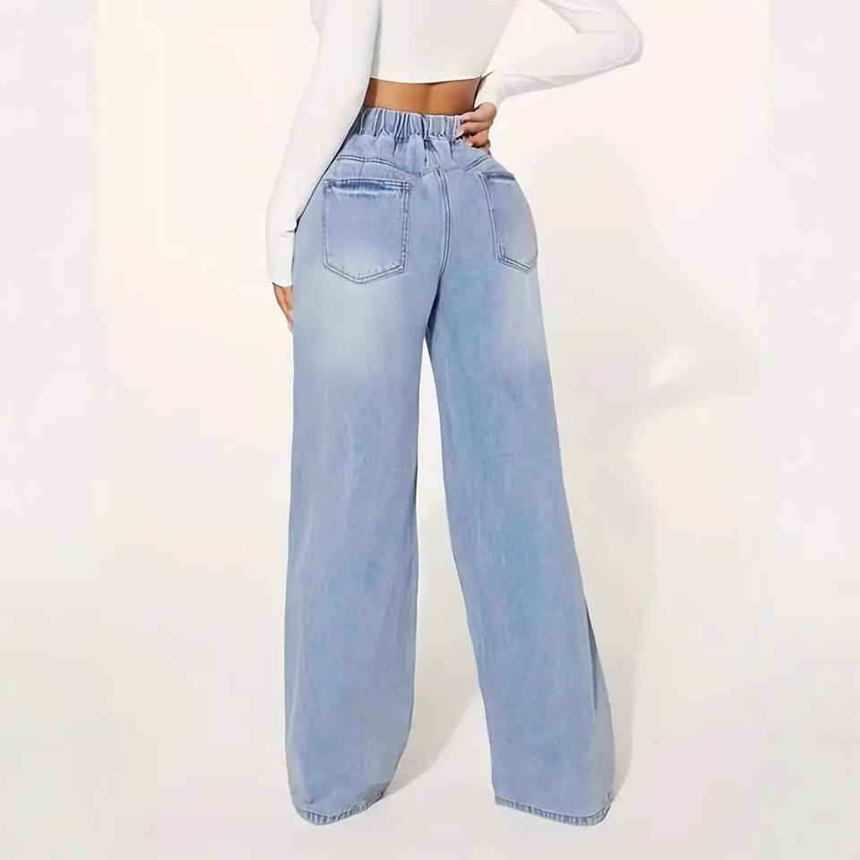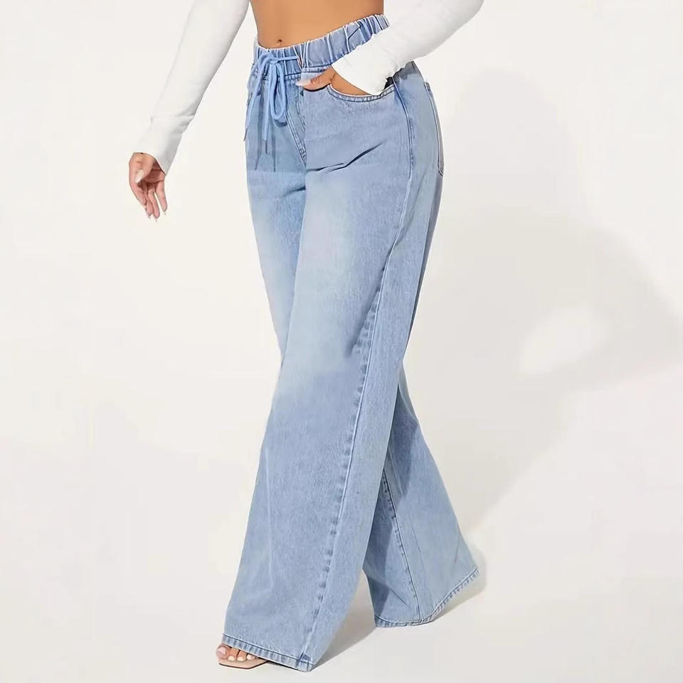 Women's High Waist Slimming Drawstring Loose Wide Leg Denim Pants for European American Market Jeans