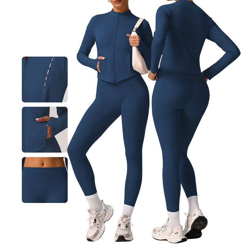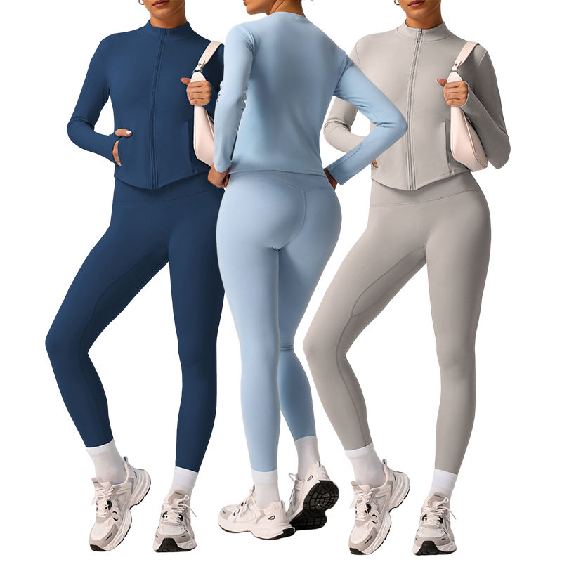 Women's High-Waisted Autumn Winter Fitness Suits Quick-Drying Yoga Set Cross-Border Fleece-Lined Sports Leisure Slim-Fitting