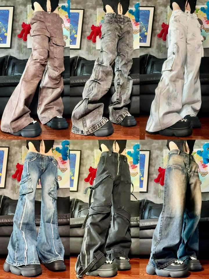 Women's High-waisted Jeans Cargo Jeans Loose Fitting Pants Casual Summer Styles Wholesale Denim Pants Wide Legs Women Jeans
