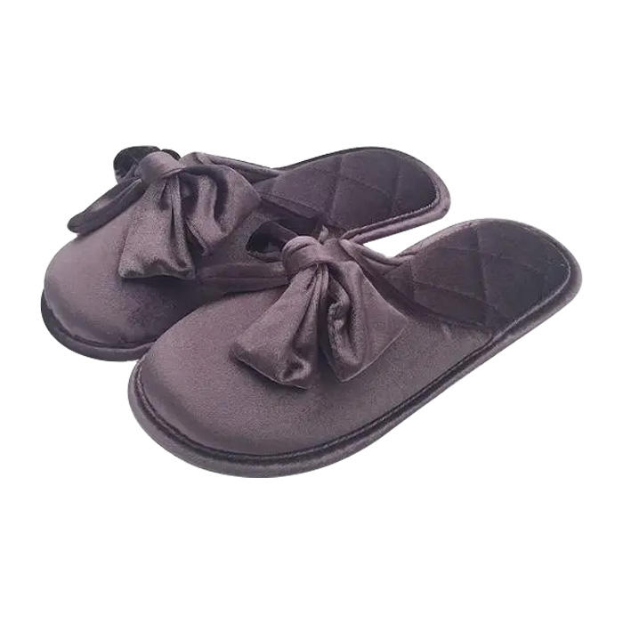 Women's House Slippers with Bow Memory Foam Slip on Smooth Velvet Sexy Soft Indoor Quilted Slippers