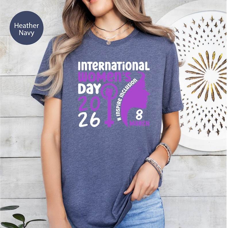 Women's International Women's Day 2026 T-Shirt Purple Print Casual Crew Neck Short Sleeve 100% Cotton Jersey Spring Summer