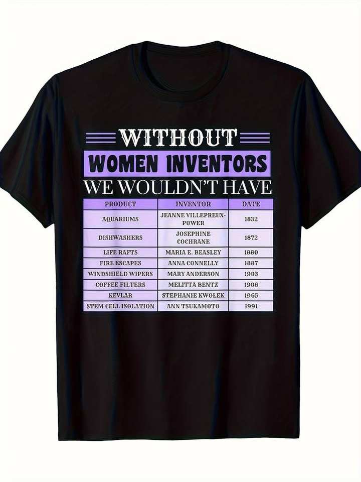 T-shirt da donna con iconi storici delle inventrici, 100% cotone 220gsm, nero, viola, bianco, iconi educative STEM, casual, girocollo, manica corta