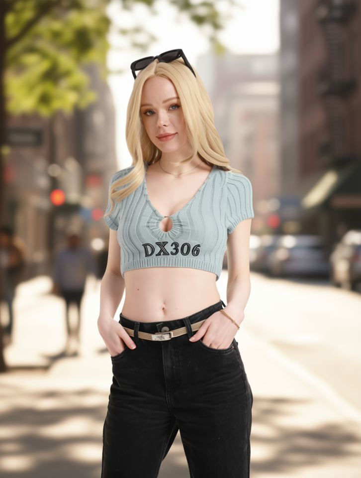 Women's Knit Crop Top DX306 V-Neck Short Sleeve Letter Print Casual Pullover 100% Polyester All Seasons