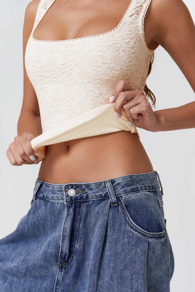 Top a Doppio Strato Senza Maniche con Scollo Quadrato e Bordo in Pizzo per Donna, Abbigliamento Sexy Estetico, Top Basic