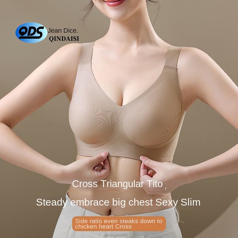Women's Large Chest Traceless Underwear Plus Size Chubby Girl Showering with Non-Rim Anti-Sagging Deep V Bra Small Push-Up Bras