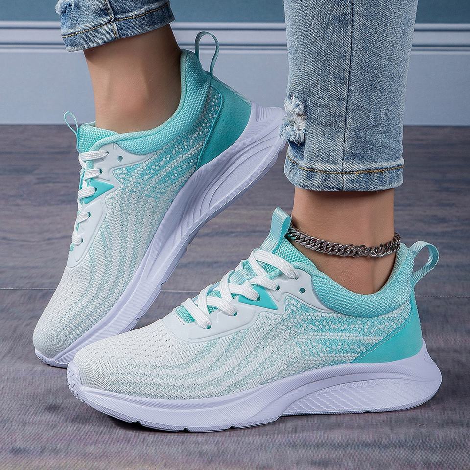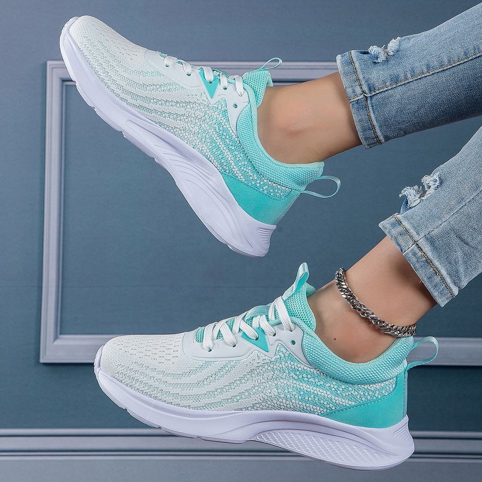 Scarpe sportive basse da donna di grandi dimensioni traspiranti e traspiranti con punta di natale di colore bianco blu per la moda primavera
