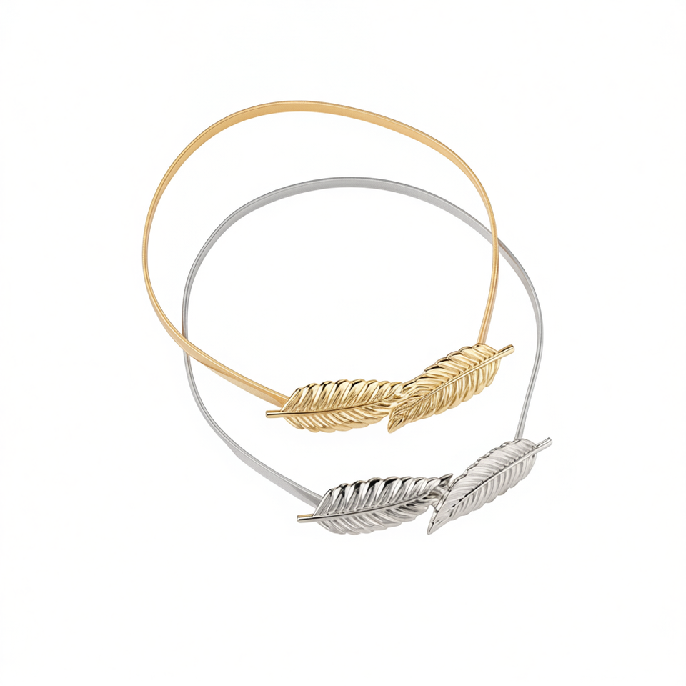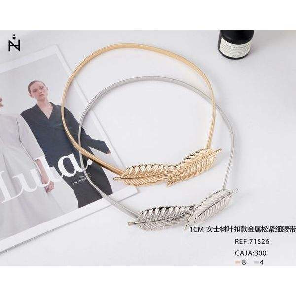 Cintura Elastica da Donna con Fibbia a Foglia in Metallo, Larghezza 1 cm