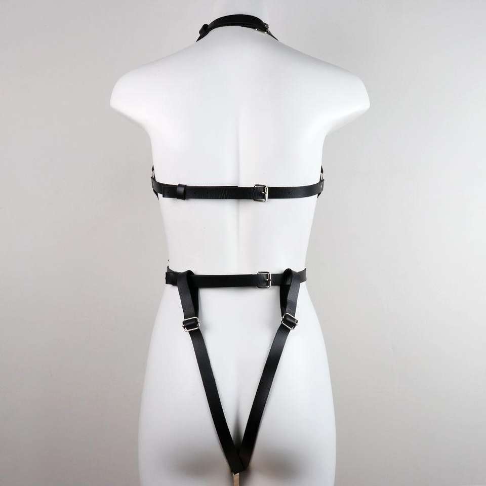 Women's Leather Bondage Collar With Leg Garter and Waist Belt, Casual Decorative Harness