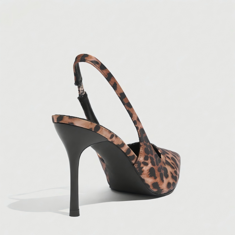 Women's Leopard Print Satin Slingback Pumps Pointed Toe Stiletto Elastic Strap Sexy Breathable Comfort Party Casual Dress Shoes