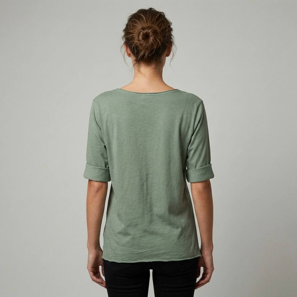 T-shirt da donna leggera, traspirante, casual, semplice, girocollo, a maniche lunghe, tinta unita, 100% cotone, primavera/estate