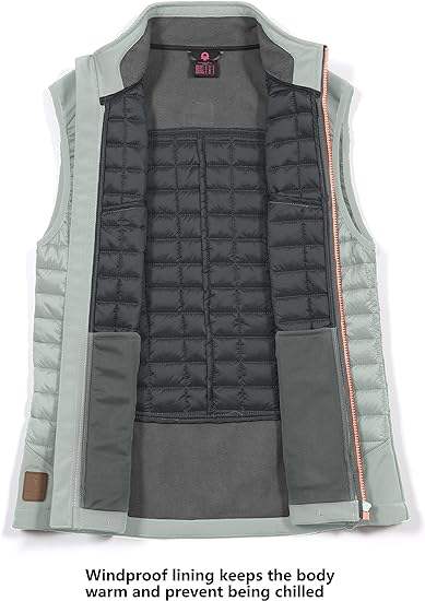 Women's Lightweight Breathable Waterproof Polyester Filled Warm Sleeveless Outdoor Jacket for Hiking Running Camping Golf
