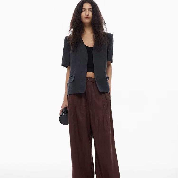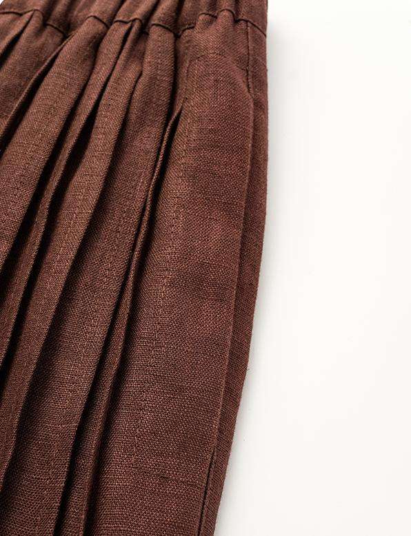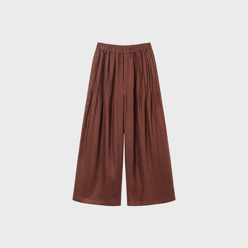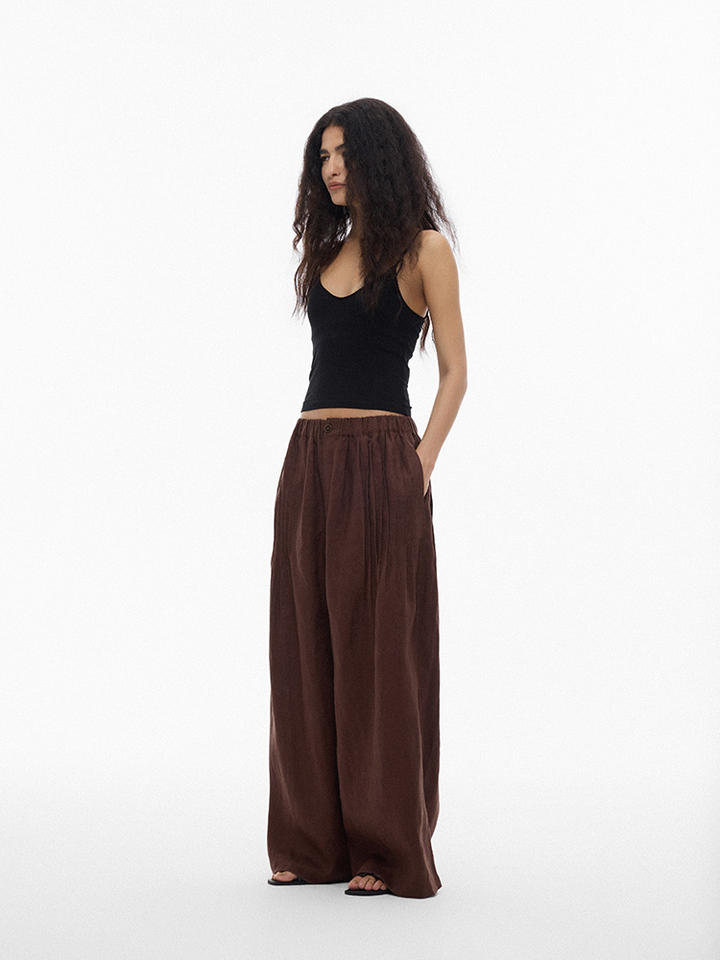 Women's Linen High-Waisted Trousers Brown Wide Leg Pants with Double Pleated Waist High Rise Belt Loops Tailored for Summer