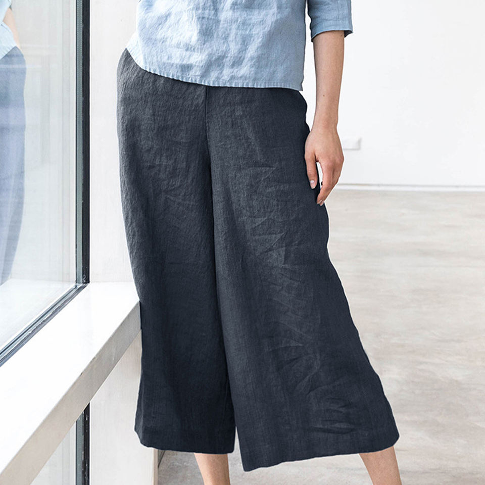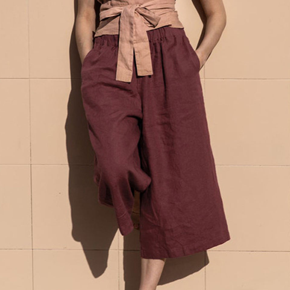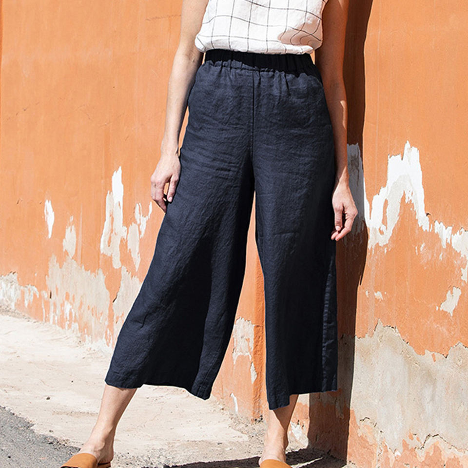 Women's Linen Pants Cotton Breathable Summer Straight Tube Solid Color Elastic Waist Leisure Custom Linen Pants Women
