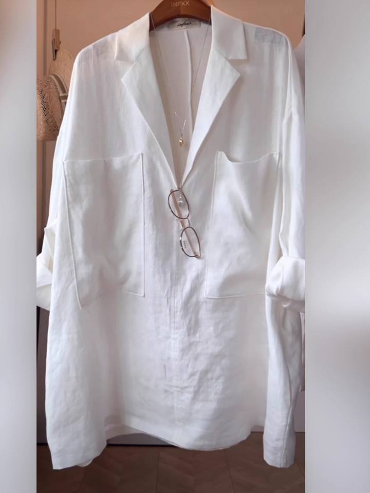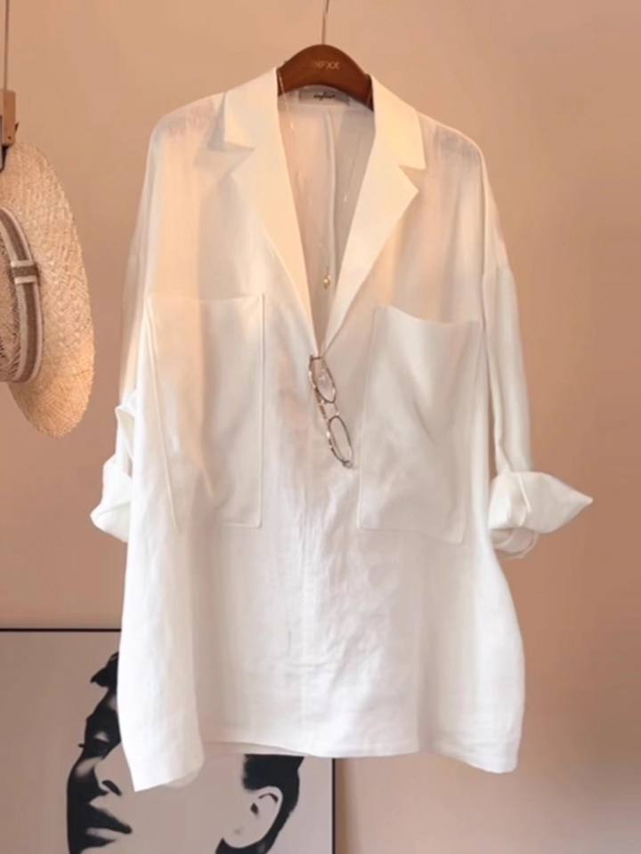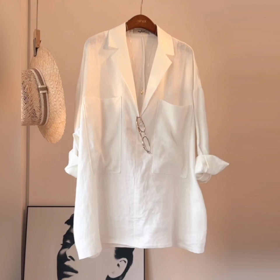 Maglia da donna con maniche a tre quarti in lino nuova maglia artistica Versatile per la primavera e l'autunno XL colletto rialzato