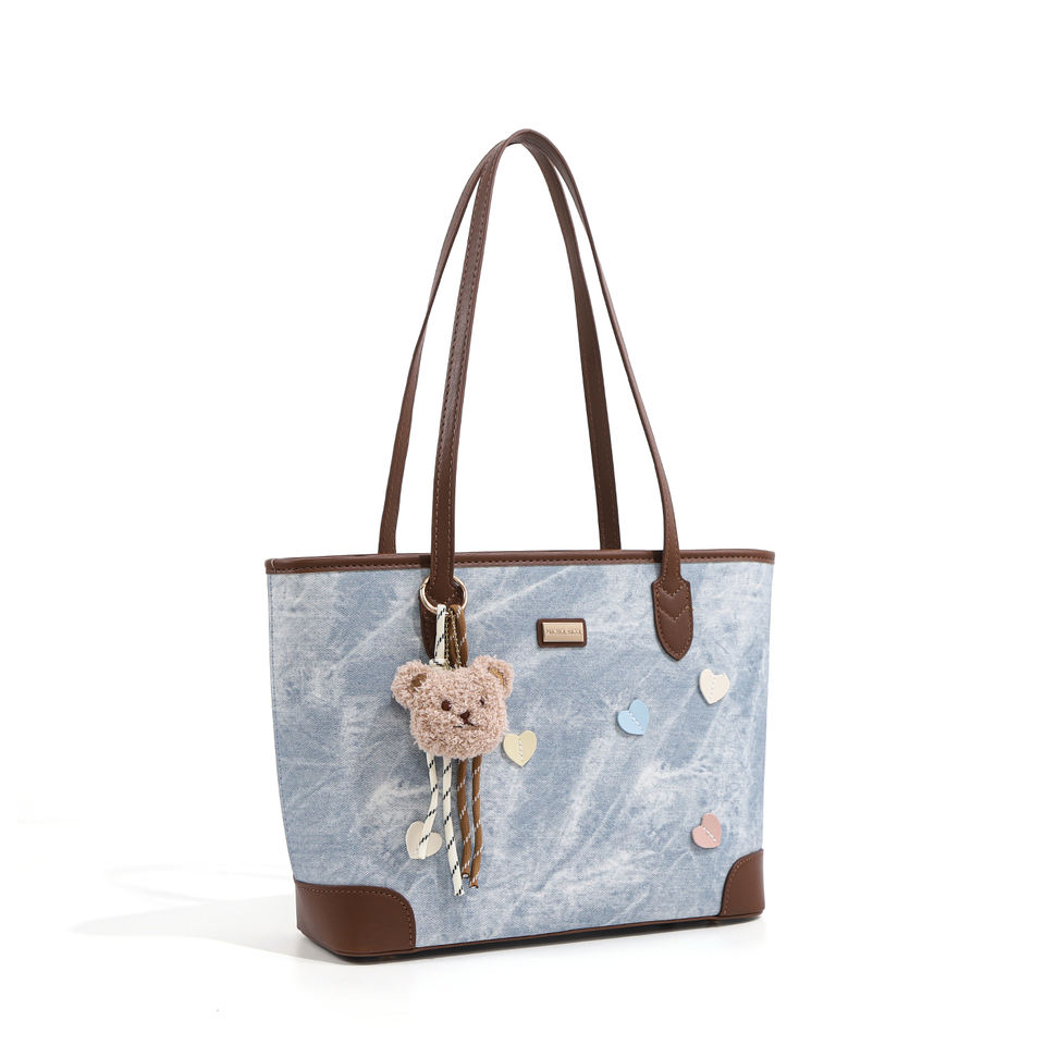 Women's Little Bear Shoulder Tote Bag Graffiti Design with PU Polyester Lining Customizable Zipper for Autumn Summer