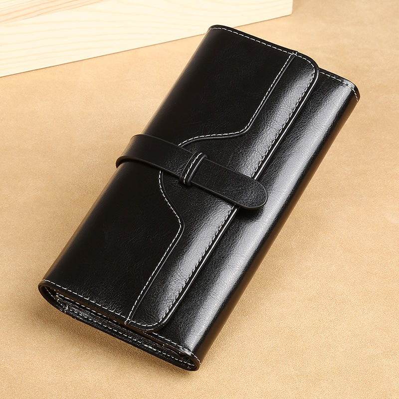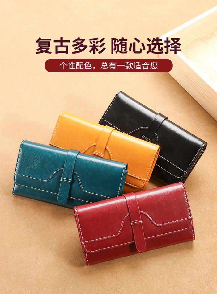 Women's Long Genuine Leather Wallet, Fashionable 30% Off, Women's Wallet, Long Clip, High-end, Retro Coin Purse