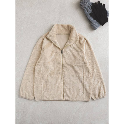 Women's Long Sleeve Flea-Up Jacket in M Beige Flour-Printed Design