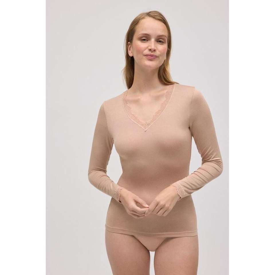Women's Long Sleeve Floral Embroidered Top with Lace Antibacterial Bamboo Satin XL Size-REF 19458