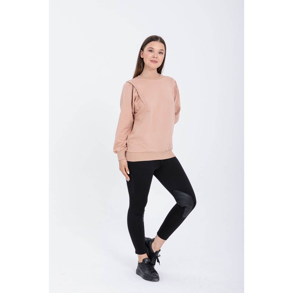 Felpa con cappuccio e felpa a maniche lunghe da donna Bisiklet Yaka Uzun Kollu Bej