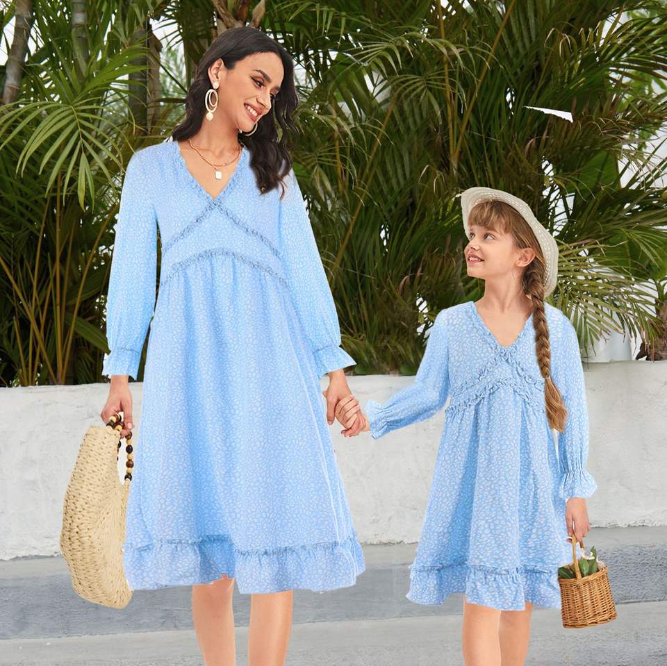Abito da festa Casual per le vacanze con scollo a v a maniche lunghe da donna